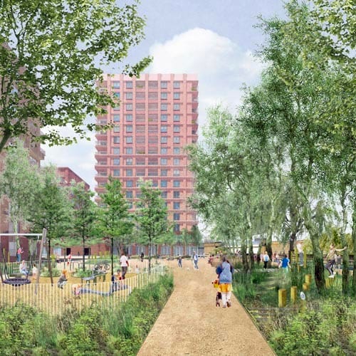 Currently home to the ABBA Voyage arena, plans feature new homes, shops and offices around a vibrant local centre.